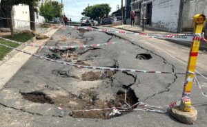 Un importante socavón en la calle La Rioja al 5.200, en barrio San Ignacio de la ciudad de Córdoba, mantiene...