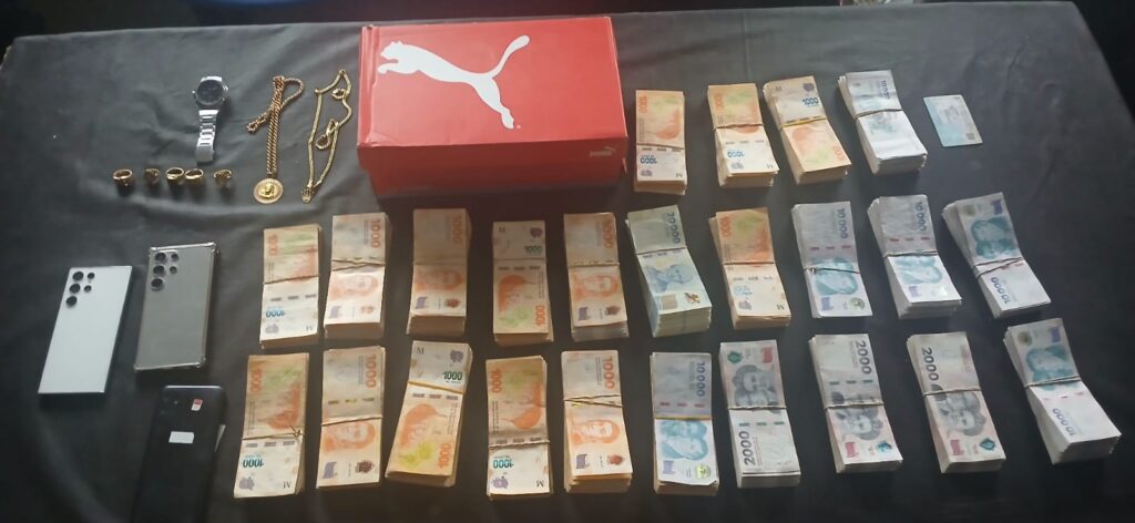 Durante la requisa, uno de los ocupantes ofreció dinero a los policías con la intención de eludir el arresto. Los uniformados continuaron con el procedimiento y encontraron en el interior del vehículo una caja de zapatillas que contenía más de 8,5 millones de pesos en efectivo.