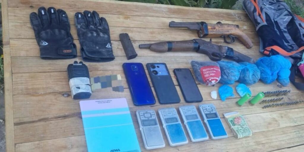 Durante el allanamiento, los efectivos encontraron un inhibidor de alarmas tipo handy, cuatro teléfonos celulares, diversas prendas de vestir, una suma no especificada de dinero en efectivo, dos armas de fuego, 40 cartuchos de diferentes calibres, así como envoltorios que contenían picadura de marihuana y cocaína. Además, se incautaron tres motocicletas con pedido judicial vigente.