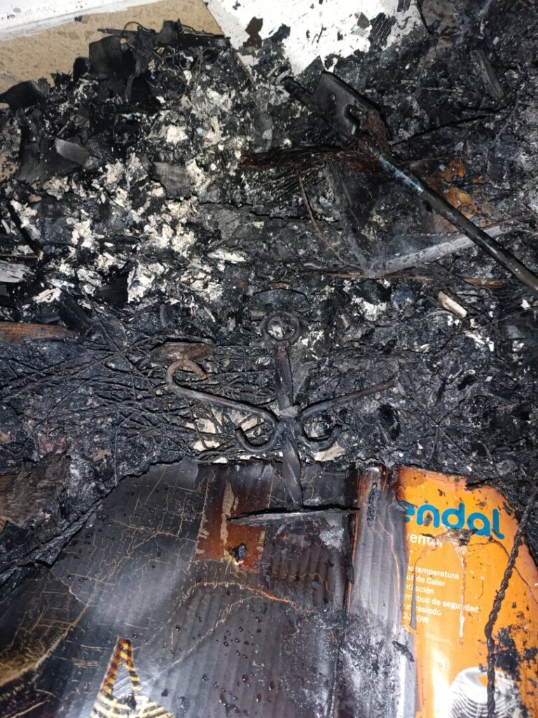 El foco ígneo, que fue reportado a través del sistema de emergencias 911, afectó principalmente el hall de ingreso del inmueble, donde se encontraba un armario de madera que contenía libros y documentación diversa.