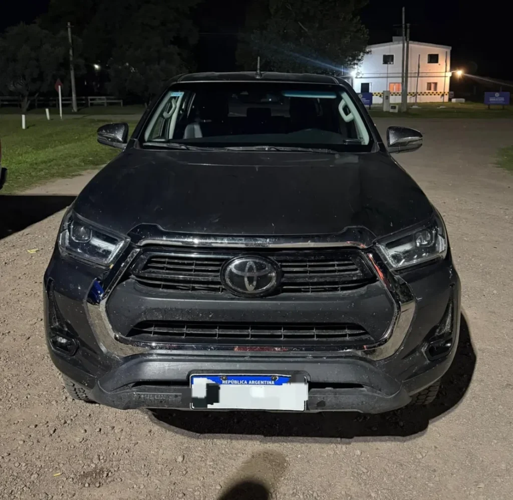 El procedimiento se inició cuando los uniformados detuvieron la marcha de una camioneta Toyota Hilux. Al verificar el vehículo, los efectivos advirtieron anomalías en los números identificatorios del rodado, lo que motivó un examen más exhaustivo.