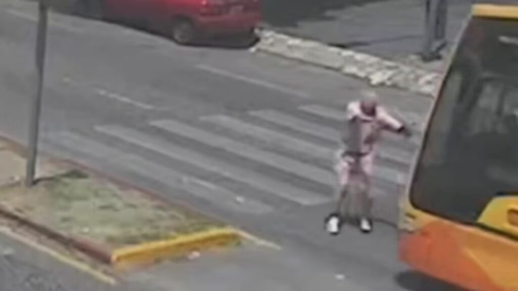 El siniestro, registrado por una cámara de seguridad, muestra el momento en que el peatón intenta llegar al cantero central cuando una unidad de la línea 17 de la empresa Coniferal lo embiste de frente, sin que el chofer lograra frenar a tiempo.