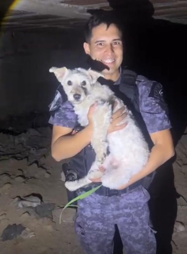 Tras varios intentos y con mucho cuidado, lograron sacar al perrito sano y salvo. Afortunadamente, no presentaba lesiones y pudo ser devuelto a su familia, que lo recibió con profundo alivio y emoción.