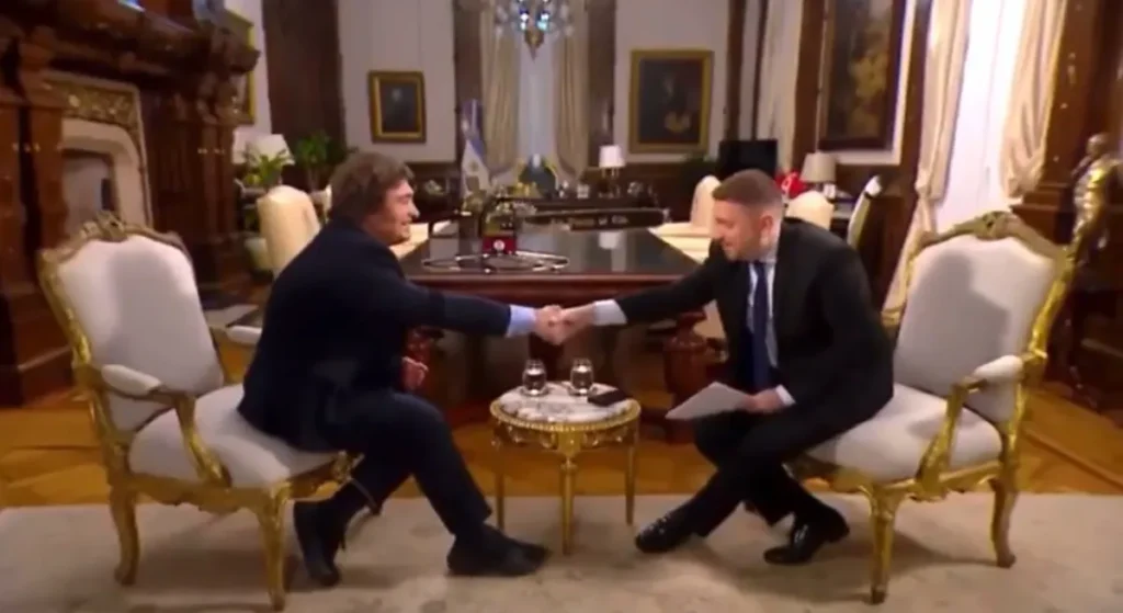 El asesor habló en voz baja con Milei, tanto el presidente como el entrevistador dijeron “claro”, dándole la razón y, bajando la mirada, Viale le dijo: “Sí, yo entiendo, me doy cuenta: te puede traer un quilombo judicial”. El conductor tomó aire, pensó, se rió y le consultó al presidente “¿cómo veníamos?”. “No sé, volvé a preguntar sobre $Libra, ¿qué se yo?”, propuso Milei y Viale accedió: “Dale, vuelvo desde ahí”.
