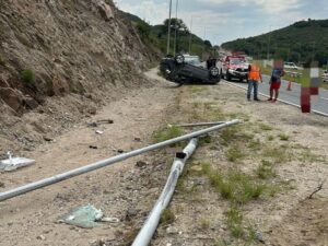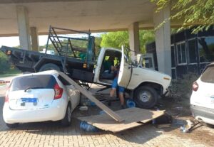 Un camión que transportaba bidones de agua y soda cayó desde un puente en el country La Deseada, en La...