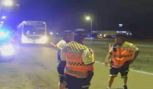 En una escena de alto riesgo, tres policías de la Caminera en Córdoba estuvieron a punto de ser atropellados por...