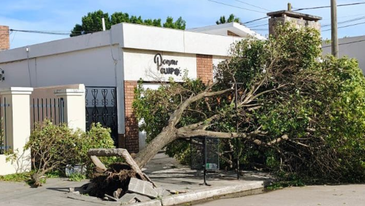Las ráfagas de viento —que en algunos sectores superaron los 170 km/h— provocaron voladuras de techos, caída de árboles y postes, interrupciones parciales del servicio eléctrico y anegamiento de calles.