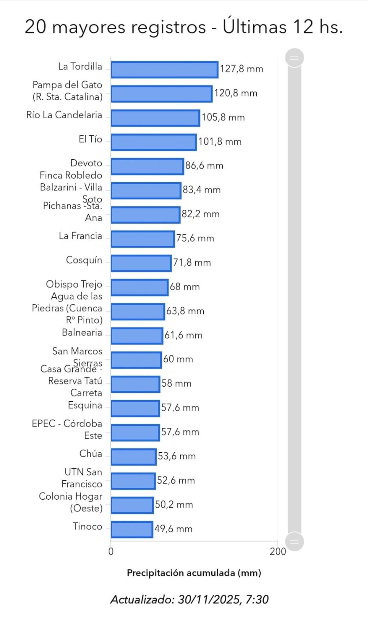 Además, hubo localidades como La Tordilla que registraron más de 120 milímetros de lluvia caída en 12 horas.