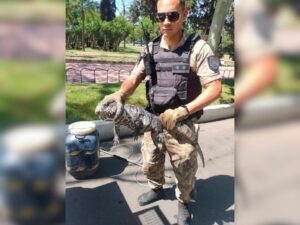 Policía Ambiental capturó un lagarto overo que caminaba por el Parque Sarmiento
