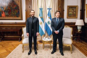 El presidente Javier Milei recibe en Casa Rosada a su par de El Salvador, Nayib Bukele, con quien mantiene una...