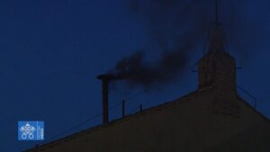 La chimenea de la Capilla Sixtina emitió una densa fumata negra, lo que reveló que los 133 cardenales electores aún...